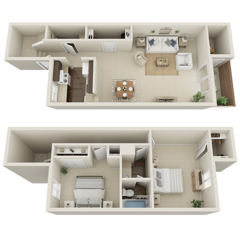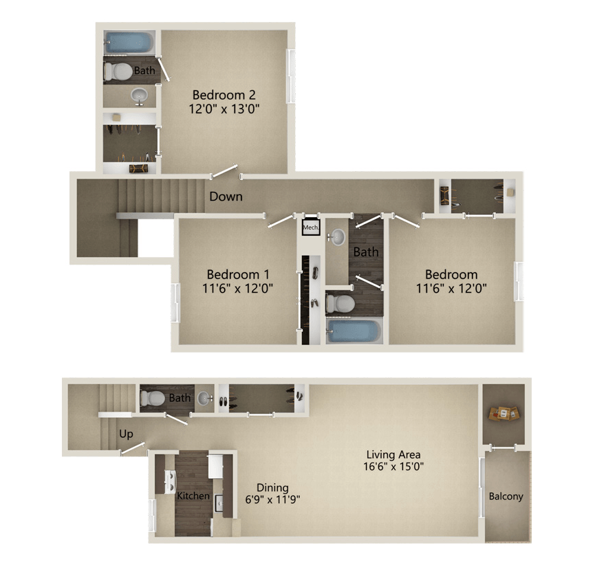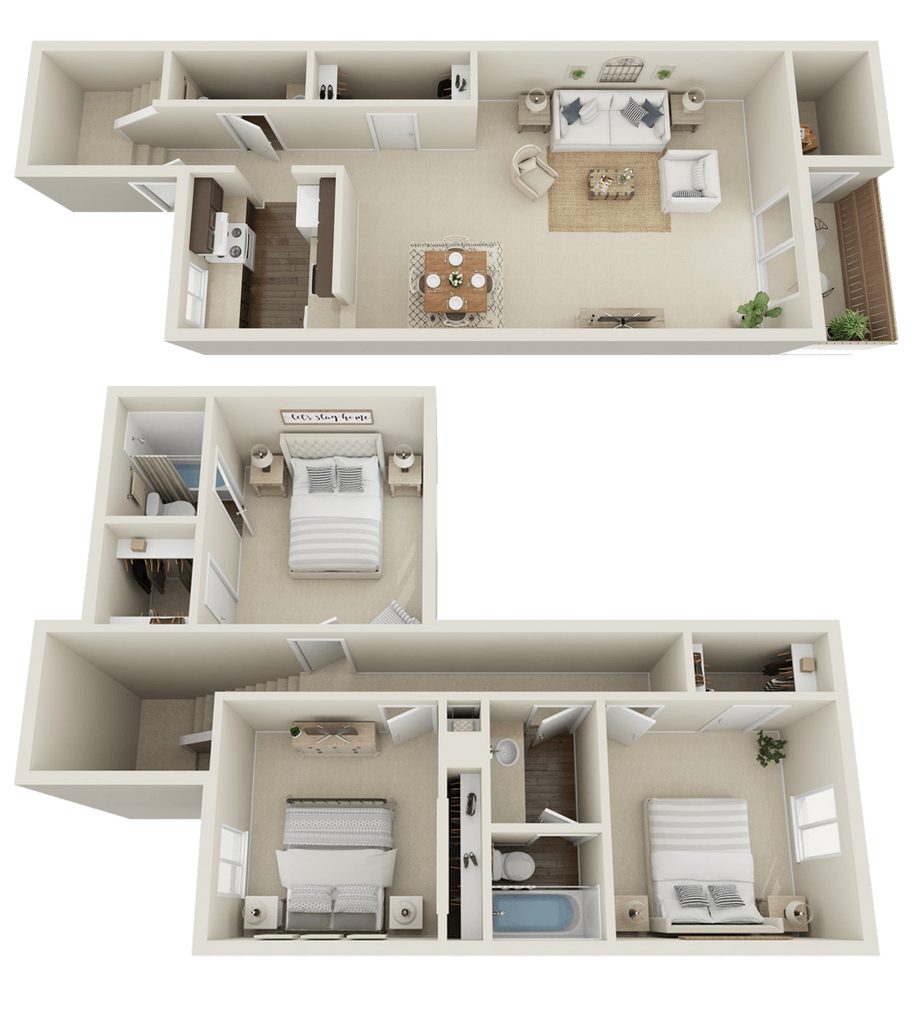 Modelo de apartamento: 3 Bed/2.5 BathLlame para Precios3 Dormitorios, 2.5 Baños, 1350 sq ftDisponible Ahora![]()
