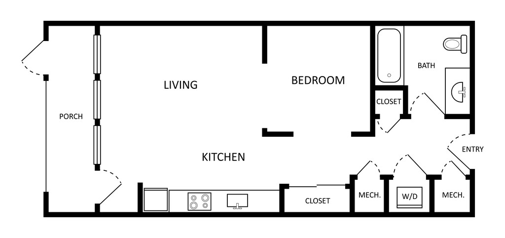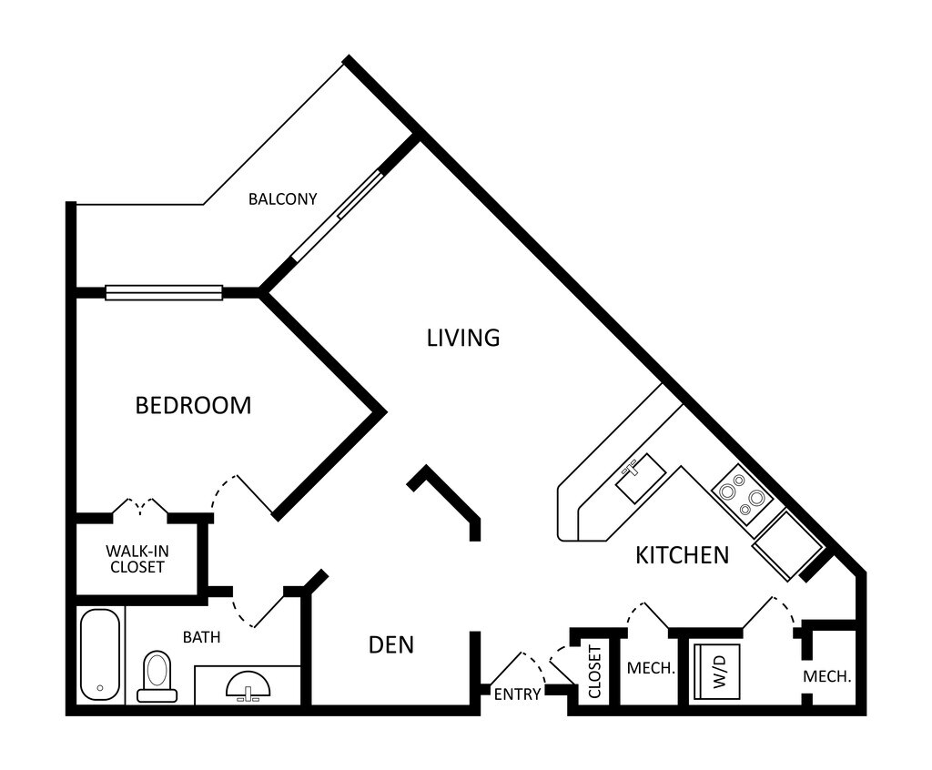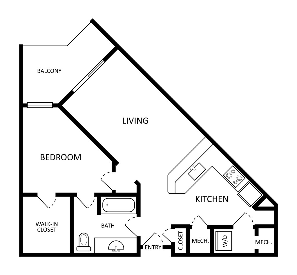 1 Dormitorio, 1 Baño, 577 pies²Disponible AhoraGalería del Modelo