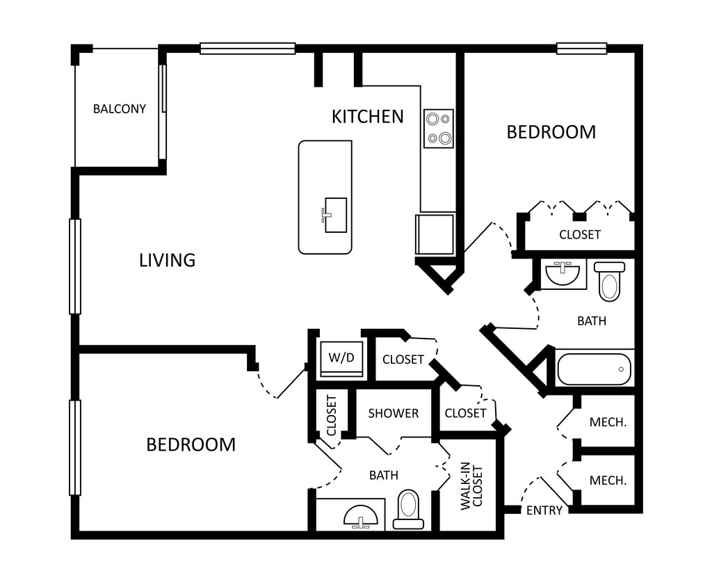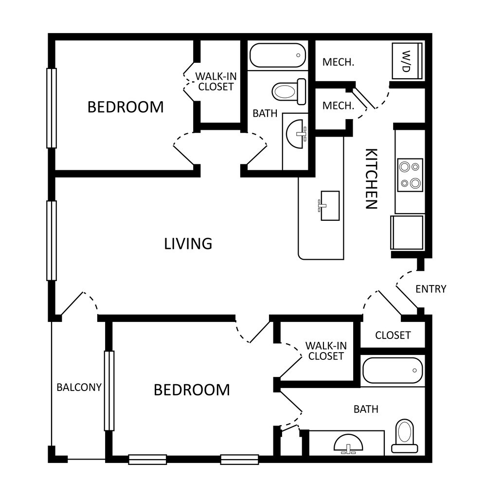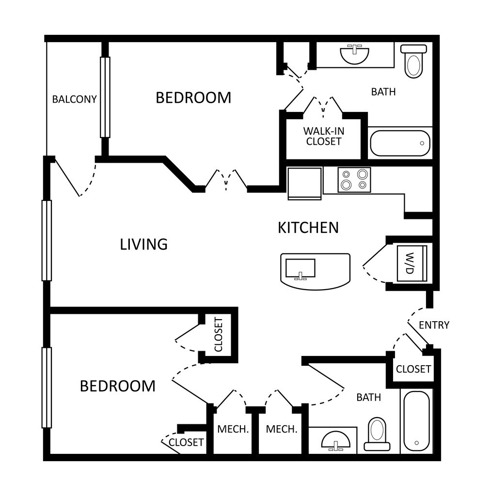 Modelo de apartamento: A1 - McClellandDesde $1,4631 Dormitorio, 1 Baño, 577 sq ftDisponible Ahora![]()