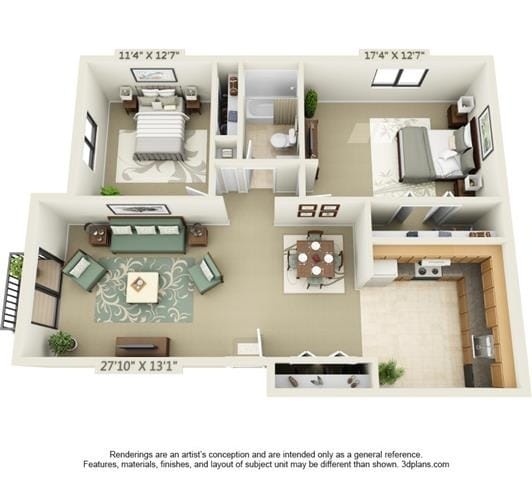 Modelo de apartamento: 2 Bedroom Style CDesde $1,5352 Dormitorios, 1 Baño, 1100 sq ftNo Disponible![]()