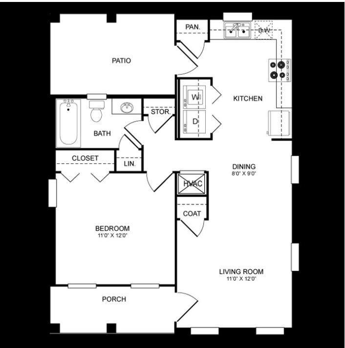 Modelo de apartamento: Dogwood1 Dormitorio, 1 Baño, 800 sq ftNo DisponibleDogwood - Plano 1 Dogwood