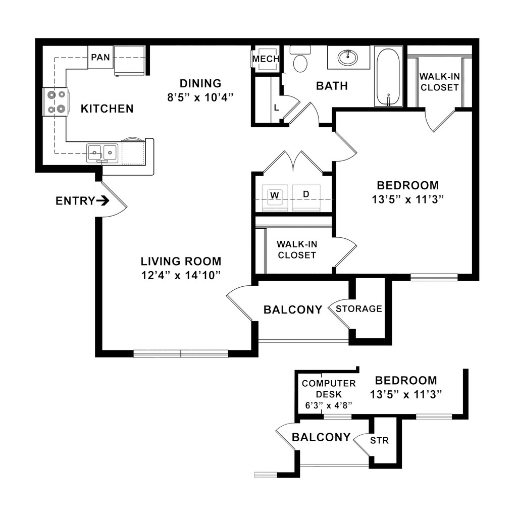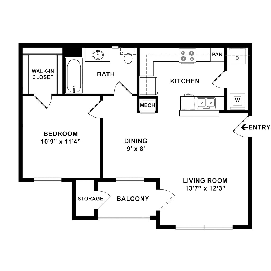 1 Dormitorio, 1 Baño, 735 pies²Disponible AhoraGalería del Modelo
