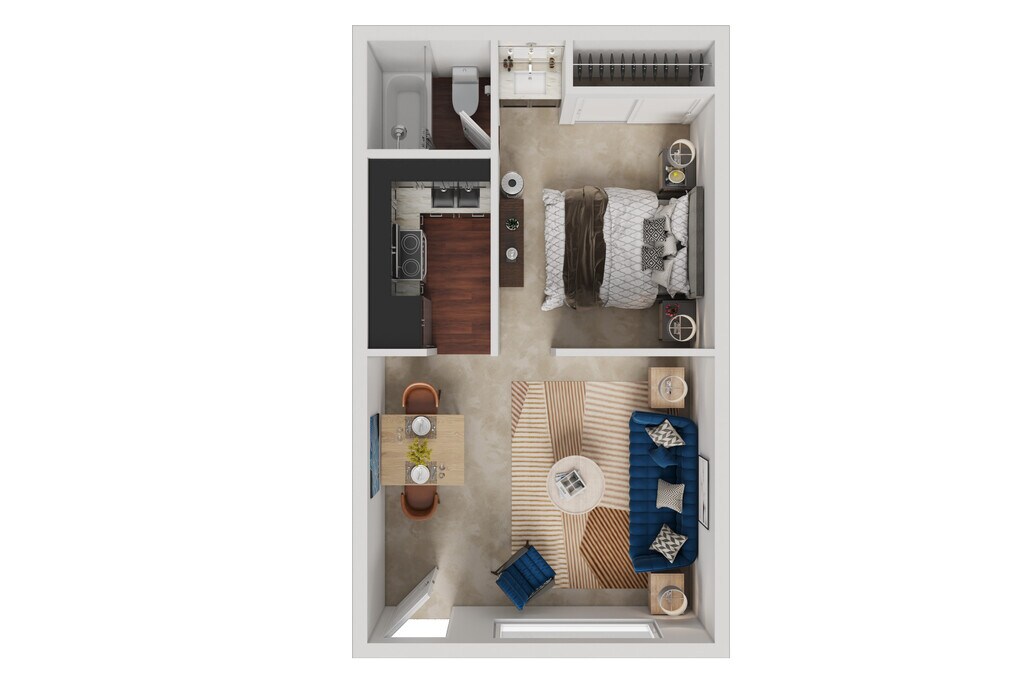 Modelo de apartamento: Studio Sugar Tree ApartmentsDesde $9141 Dormitorio, 1 Baño, 432 sq ftDisponible AhoraLos planos son representaciones artísticas. Todas las dimensiones son aproximadas. El producto y las especificaciones reales pueden variar en tamaño o detalle. No todas las características están disponibles en cada vivienda en alquiler. Por favor, consulta con un representante para obtener más detalles.