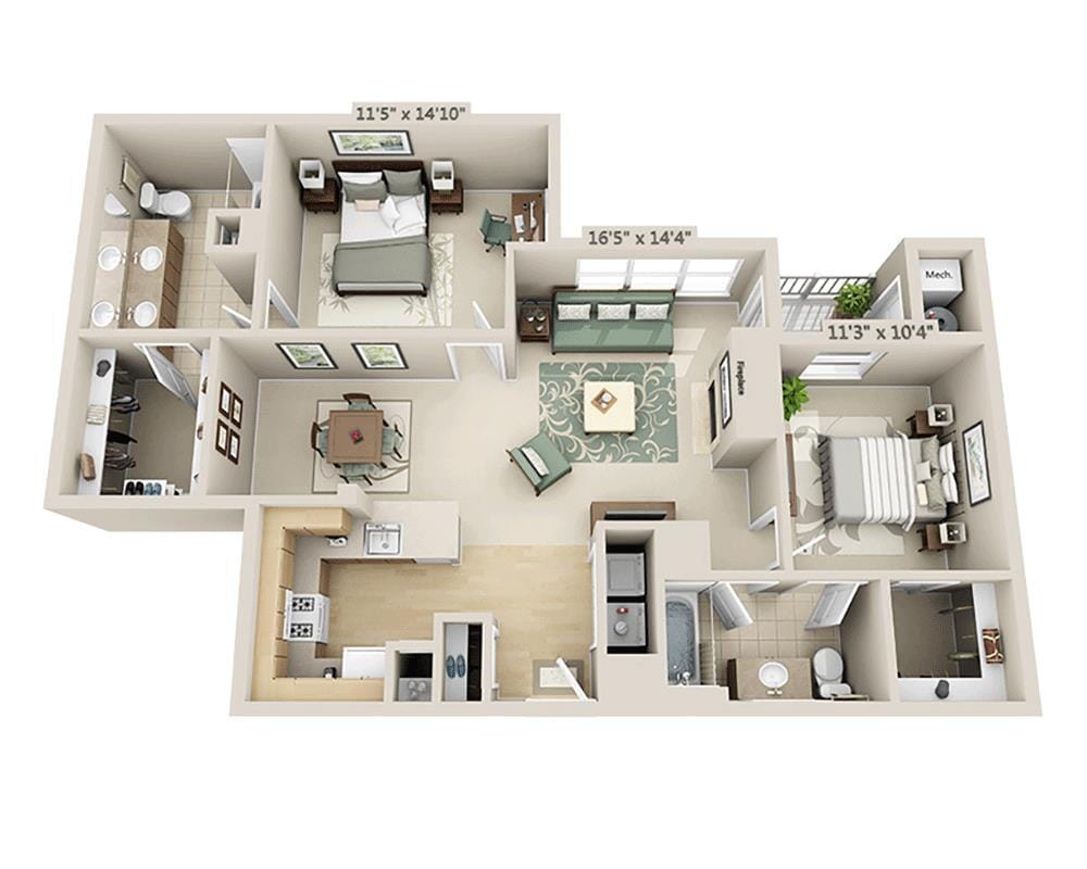 Unidad: 7-1370 - Imagen 4 Los planos son representaciones artísticas. Todas las dimensiones son aproximadas. El producto y las especificaciones reales pueden variar en tamaño o detalle. No todas las características están disponibles en cada vivienda en alquiler. Por favor, consulta con un representante para obtener más detalles.