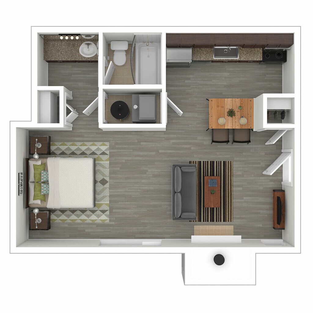 Modelo de apartamento: S3Desde $1,199Estudio, 1 Baño, 520 sq ftDisponible November 24, 2025PlanosFotos![]()