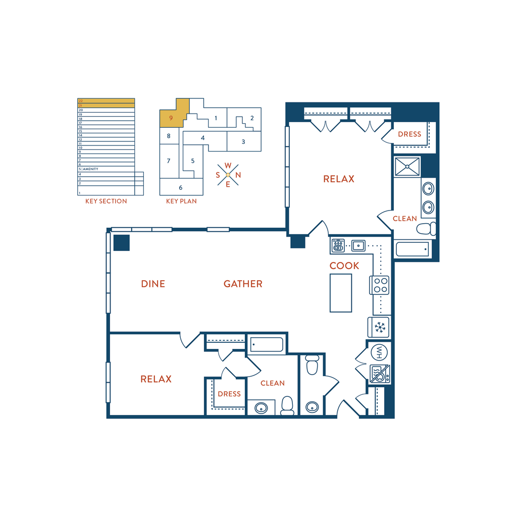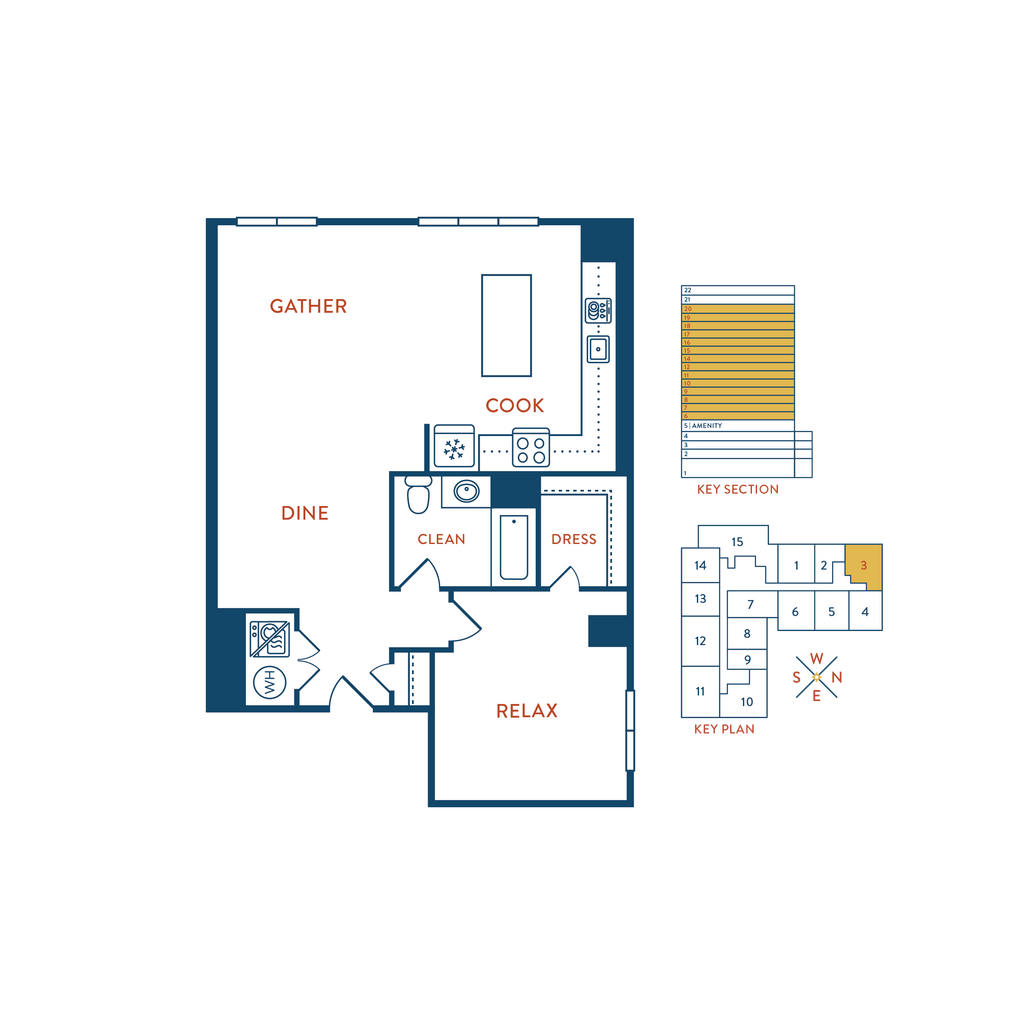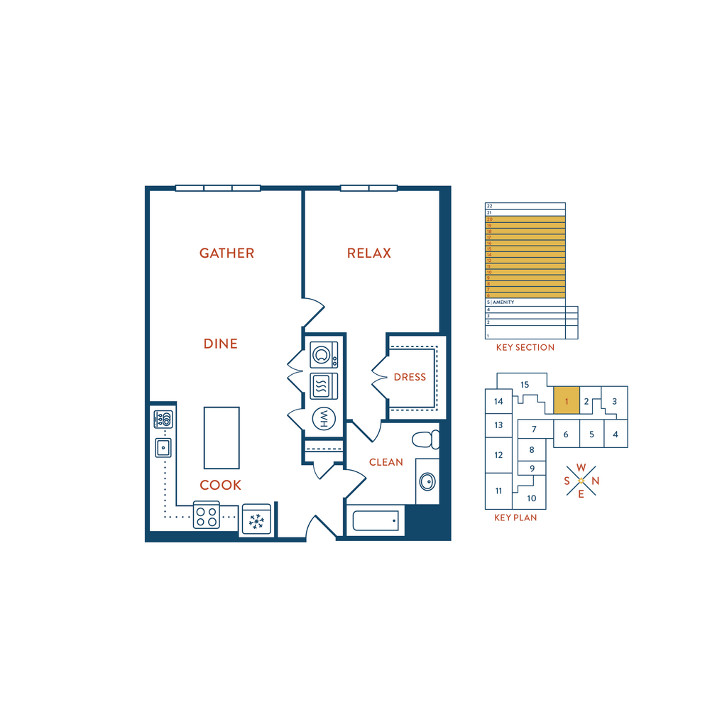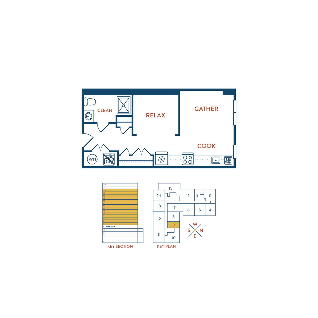 Modelo de apartamento: Unit 9Desde $2,529Estudio, 1 Baño, 477 sq ftDisponible Ahora![]()
