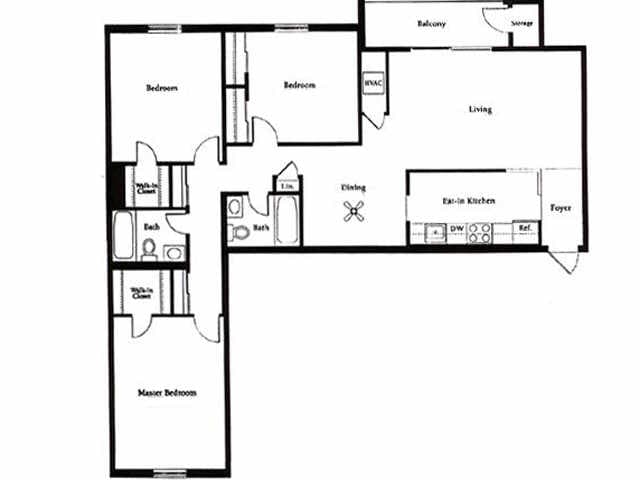 Modelo de apartamento: HAMP 2.12 Dormitorios, 1 Baño, 864 sq ftNo DisponibleHAMP 2.1 - Plano 1 3 Dormitorios
