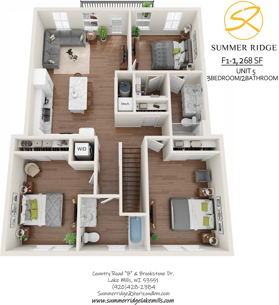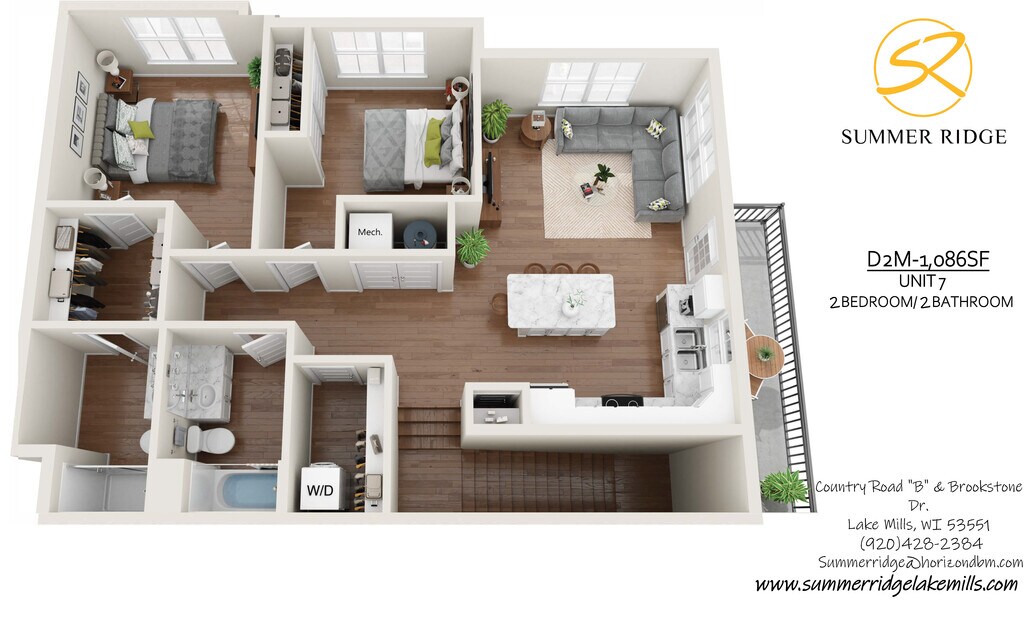 DOS DORMITORIOS DISPONIBLES AHORA. Summer Ridge Apartments es una nueva comunidad de apartamentos de lujo estilo casa que comenzó a abrir en mayo de 2023. Summer Ridge ofrece apartamentos de uno, dos y tres dormitorios bien equipados con electrodomésticos de acero inoxidable, encimeras de granito, pisos de vinilo y ventanas extragrandes. Estas características se complementan con una combinación de colores moderna y acabados mejorados por toda la prenda. Nuestros apartamentos estilo casa adosada cuentan con entrada privada, lavandería en la unidad, garaje adjunto con opciones de estación de carga de vehículos eléctricos y balcón o patio. ¡Disfrute del amplio espacio verde, un divertido patio de juegos y un gran parque para perros a pasos de su puerta principal! Summer Ridge es una comunidad para no fumadores que acepta mascotas (se aplican restricciones) cerca del hermoso Rock Lake, el tranquilo Glacial Drumlin Trail y el centro de Lake Mills, donde encontrará una variedad de cafés, restaurantes y tiendas para su disfrute. Su sueño lo espera en Summer Ridge, donde puede disfrutar de su nuevo hogar mientras disfruta de todas las comodidades que Lake Mills tiene para ofrecer, desde atractivas oportunidades recreativas hasta escuelas galardonadas y un encantador centro de la ciudad.