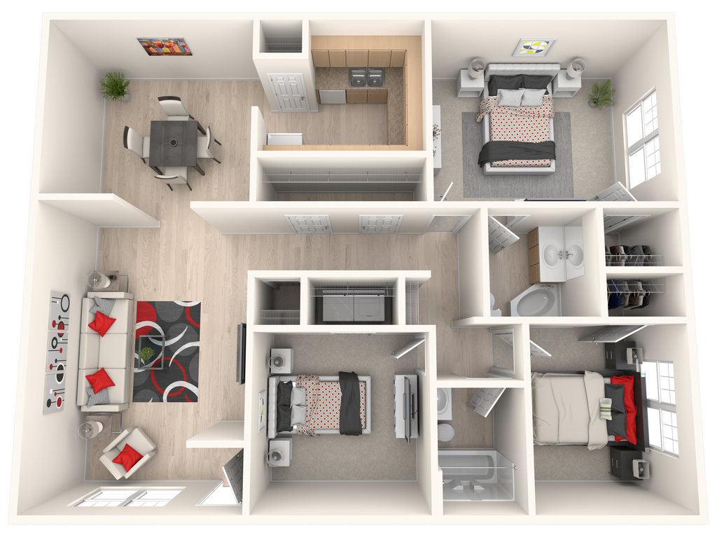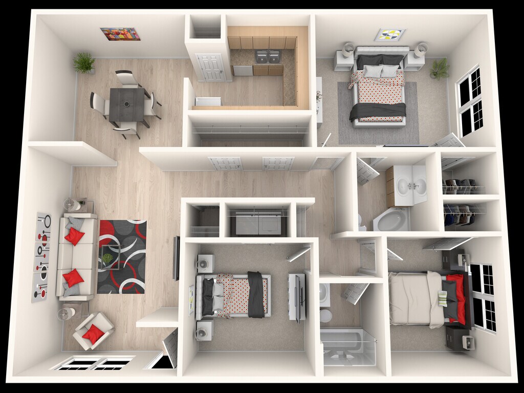 3 Dormitorios, 2 Baños, 1208 pies²Disponible AhoraGalería del Modelo