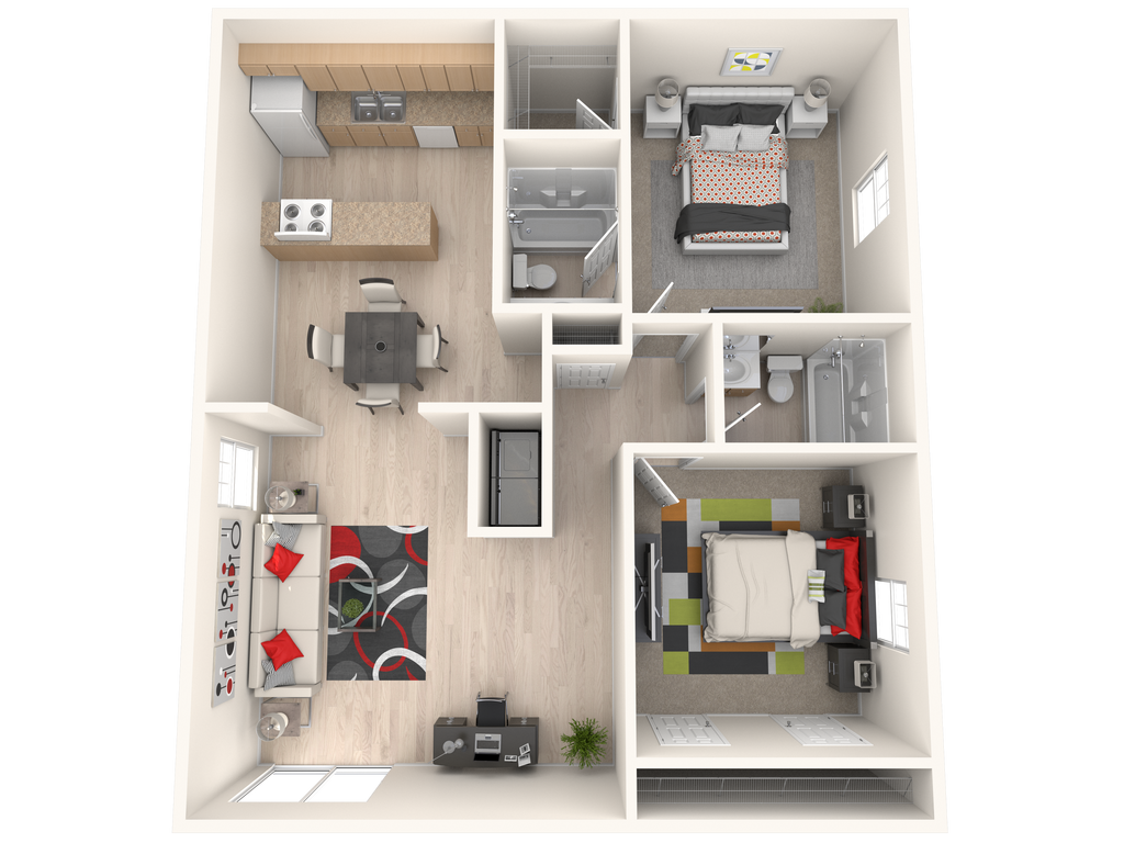 2 Dormitorios, 2 Baños, 1043-1048 pies²Disponible AhoraGalería del Modelo