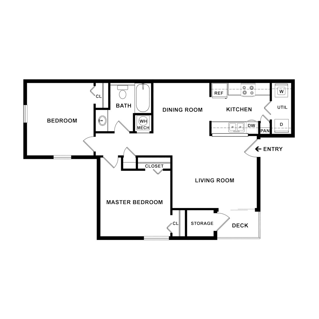 Modelo de apartamento: 2BR/1.0BA$1,2802 Dormitorios, 1 Baño, 835 sq ftDisponible Ahora![]()