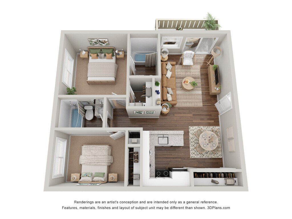 2 Dormitorios, 2 Baños, 1000 pies²Disponible AhoraGalería del Modelo