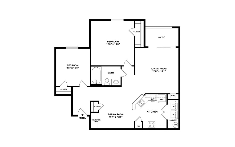 2 Dormitorios, 1 Baño, 923 pies²Disponible AhoraGalería del Modelo