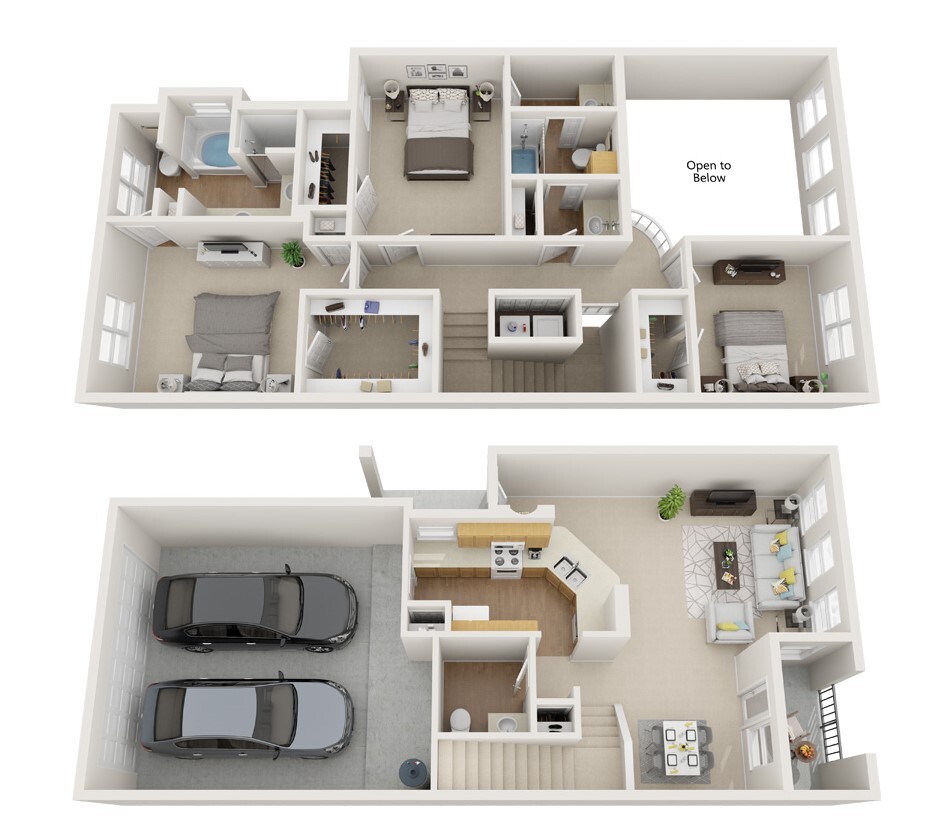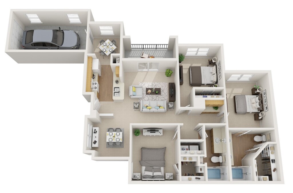Modelo de apartamento: SundanceDesde $2,1033 Dormitorios, 2 Baños, 1389-1480 sq ftDisponible Ahora![]()