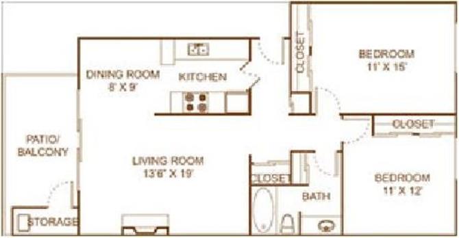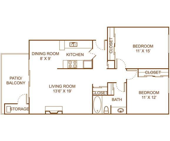 2 Dormitorios, 1 Baño, 970 pies²Disponible AhoraGalería del Modelo