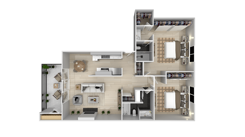 Modelo de apartamento: Two Bedroom Two BathsDesde $3,6752 Dormitorios, 2 Baños, 1120 sq ftDisponible Ahora![]()