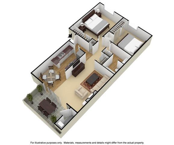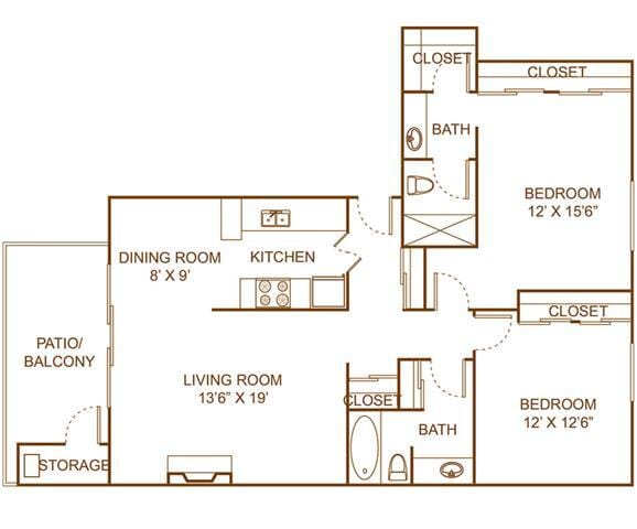 Modelo de apartamento: Two Bedroom One BathsDesde $3,3502 Dormitorios, 1 Baño, 970 sq ftDisponible Ahora![]()
