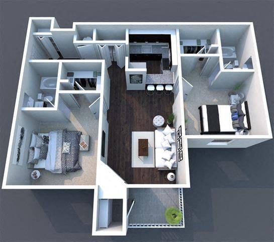 2 Dormitorios, 2 Baños, 900 pies²Disponible AhoraGalería del Modelo