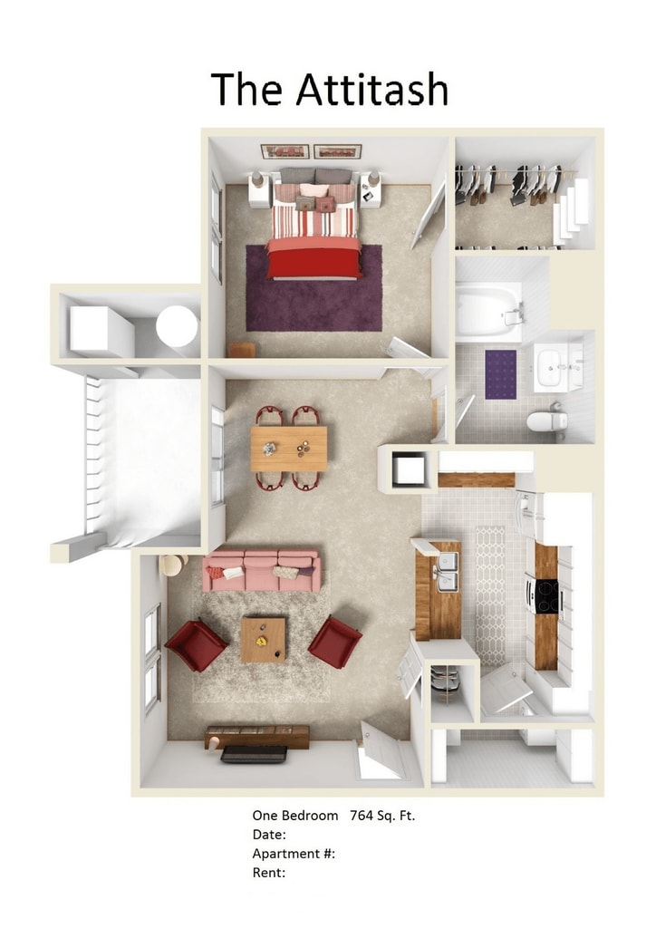 Modelo de apartamento: AttitashDesde $2,1991 Dormitorio, 1 Baño, 764 sq ftDisponible AhoraLos planos son representaciones artísticas. Todas las dimensiones son aproximadas. El producto y las especificaciones reales pueden variar en tamaño o detalle. No todas las características están disponibles en cada vivienda en alquiler. Por favor, consulta con un representante para obtener más detalles.