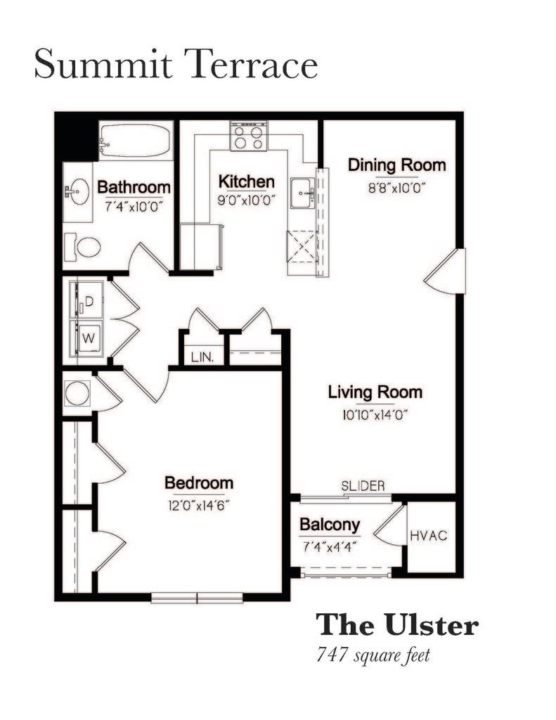 Modelo de apartamento: UlsterDesde $1,9001 Dormitorio, 1 Baño, 747 sq ftDisponible Ahora![]()