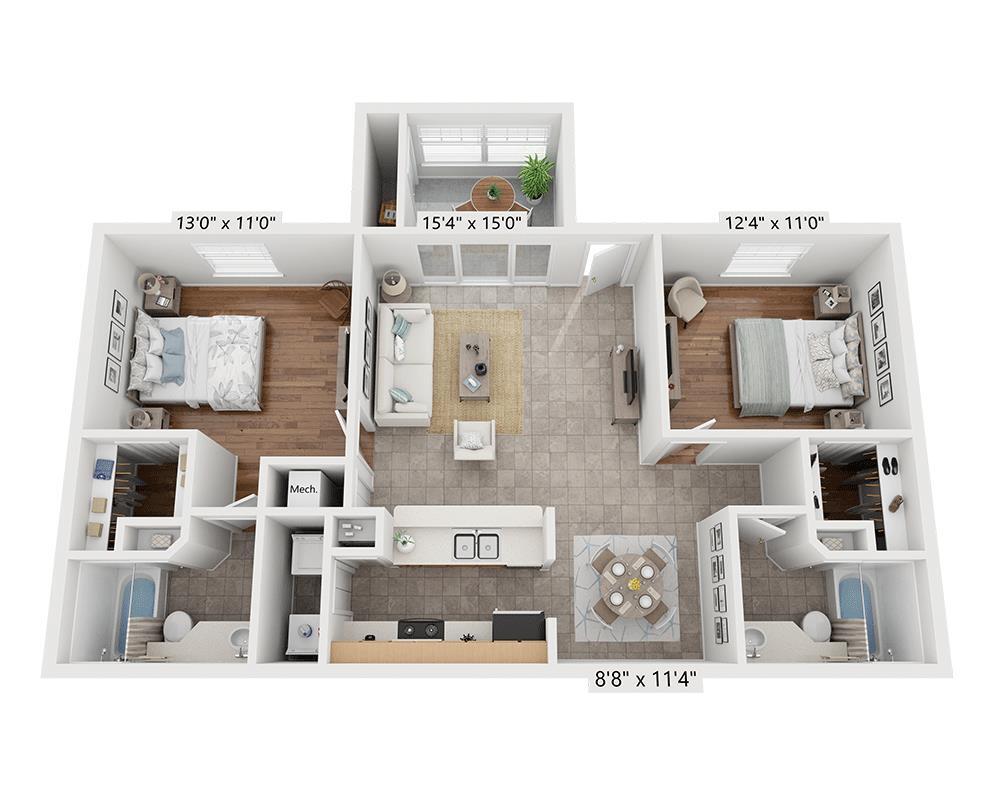 1 Dormitorio, 1 Baño, 817 pies²Disponible AhoraGalería del Modelo