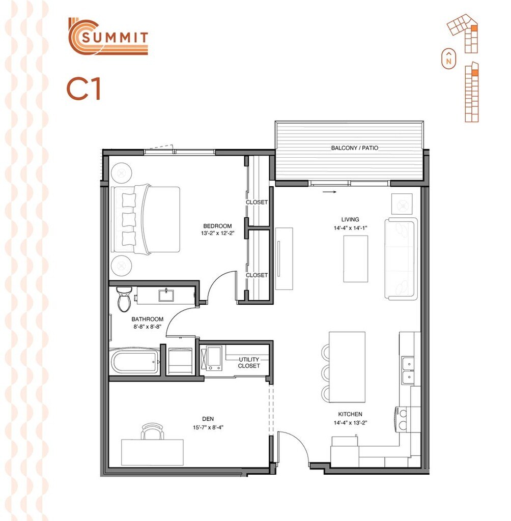 1 Dormitorio, 1 Baño, 569 pies²Disponible AhoraGalería del Modelo