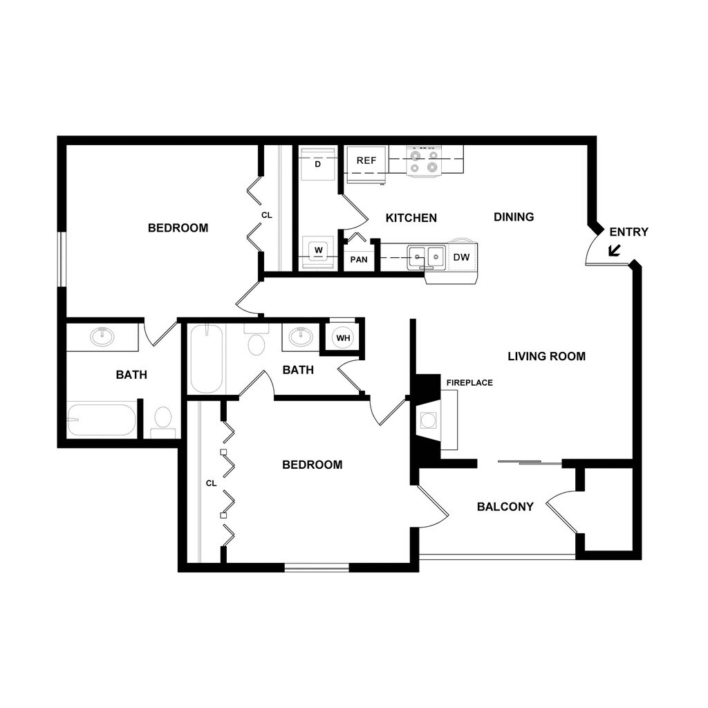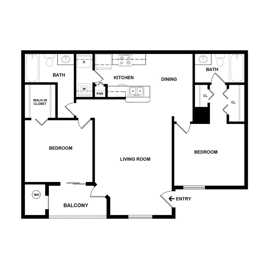 2 Dormitorios, 1 Baño, 916 pies²Disponible AhoraGalería del Modelo