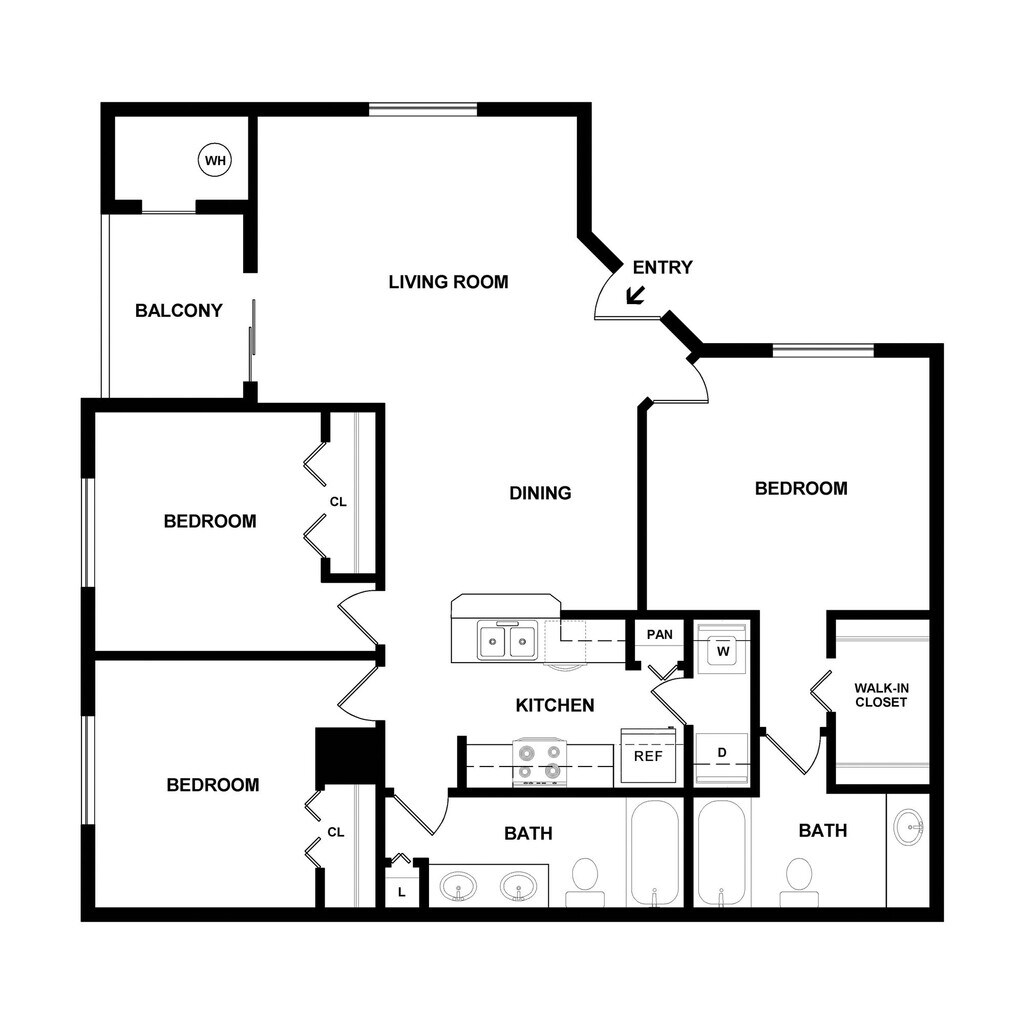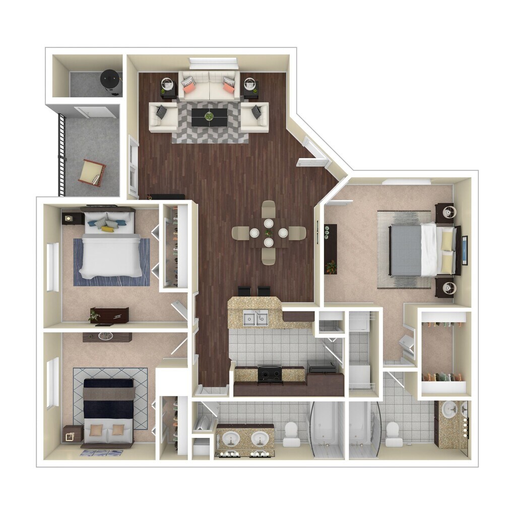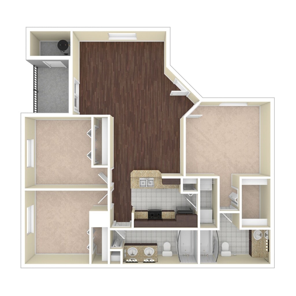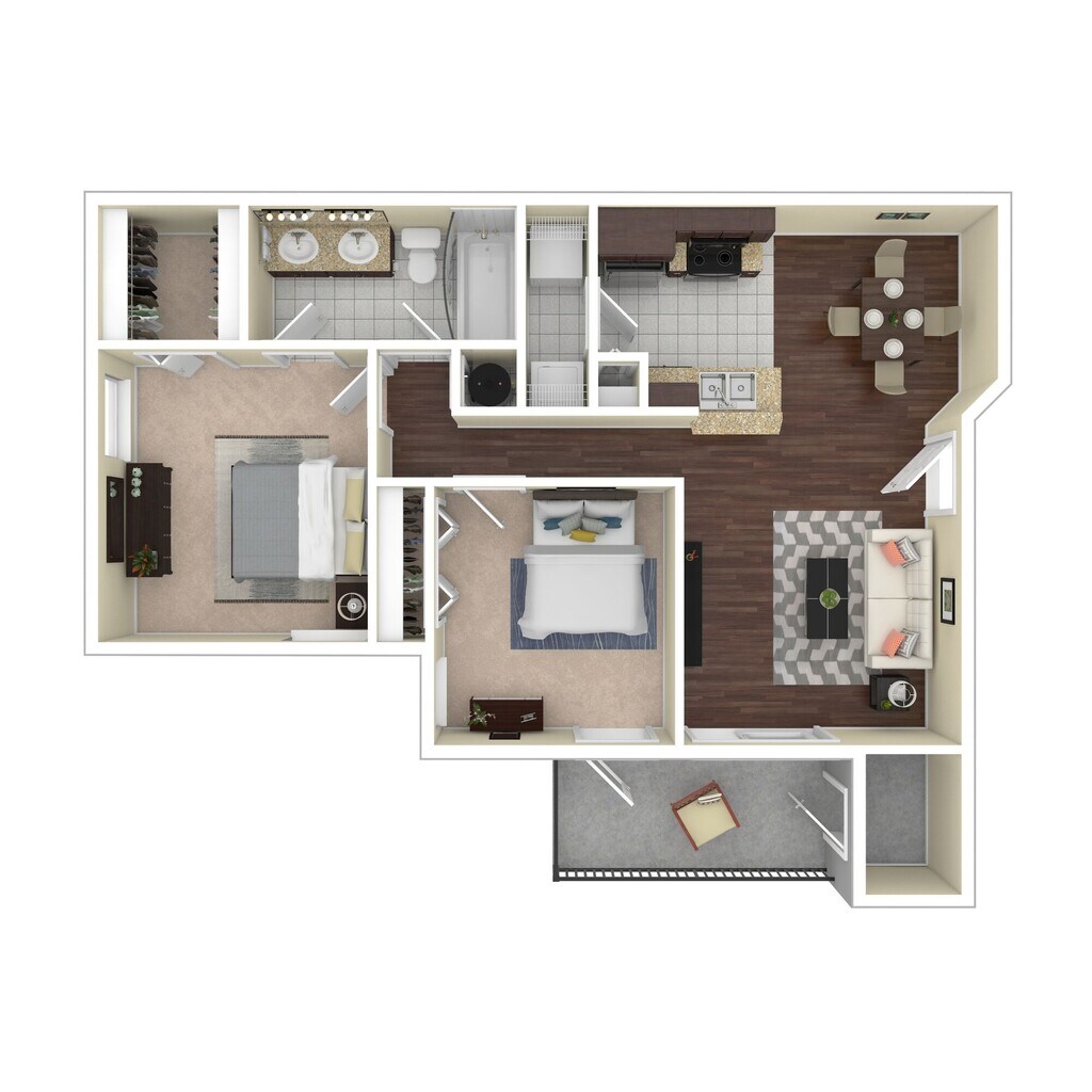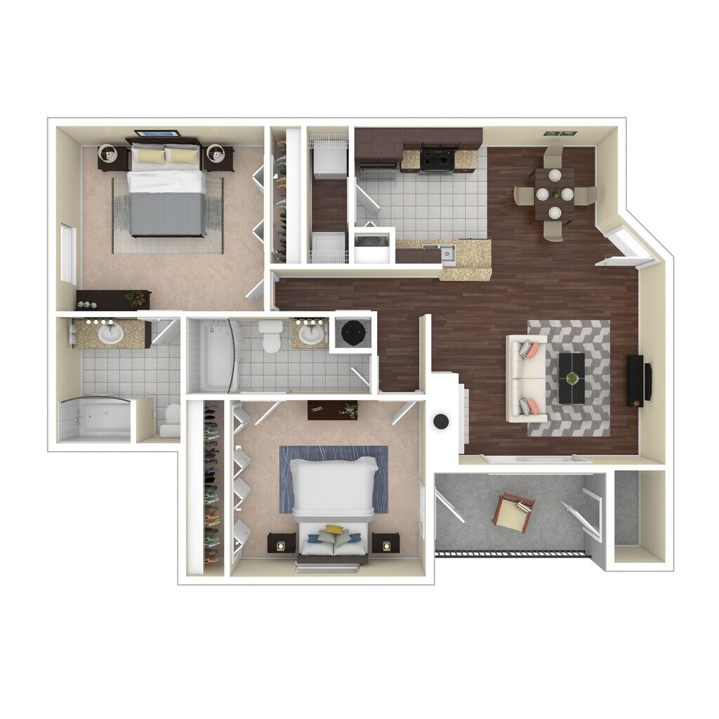 Modelo de apartamento: SunsailorDesde $1,1611 Dormitorio, 1 Baño, 770 sq ftDisponible Ahora![]()