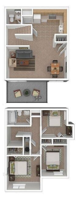 3 Dormitorios, 1.5 Baños, 1009 pies²Disponible AhoraGalería del Modelo