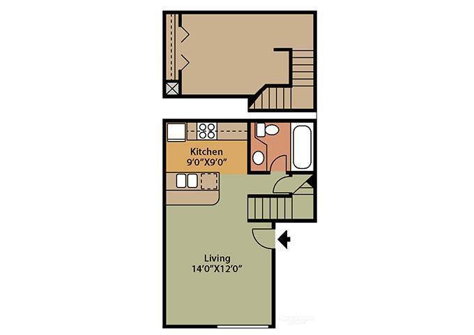 1 Dormitorio, 1 Baño, 500 pies²Disponible AhoraGalería del Modelo