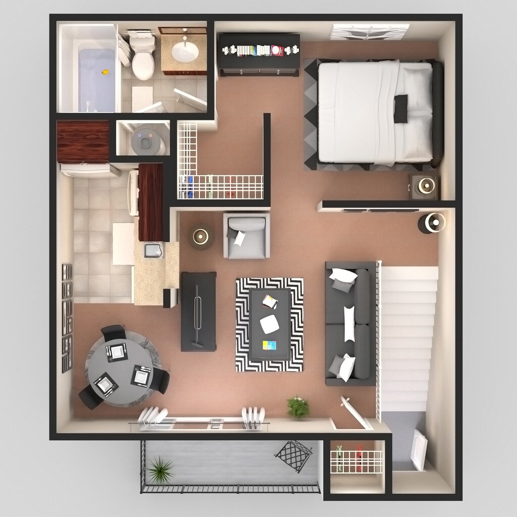 1 Dormitorio, 1 Baño, 750 pies²El más grandeEsta opción tiene las unidades más grandes para este modeloGalería del Modelo