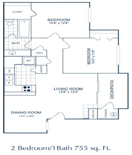 2 Dormitorios, 1 Baño, 755 pies²Disponible AhoraGalería del Modelo