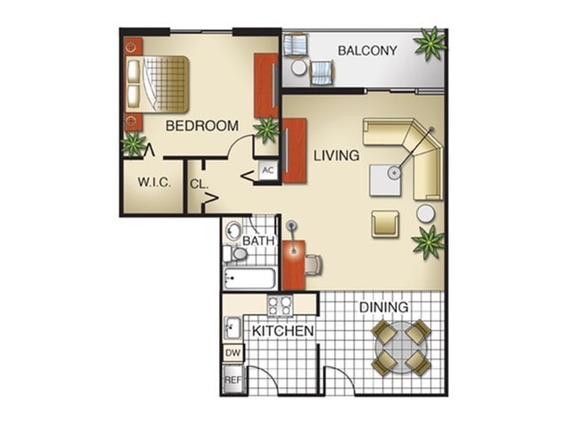 Modelo de apartamento: Model A1 Dormitorio, 1 Baño, 747 sq ftNo Disponible![]()
