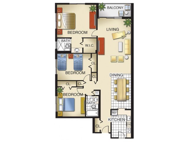 Modelo de apartamento: Model C3 Dormitorios, 2 Baños, 1365 sq ftNo Disponible![]()