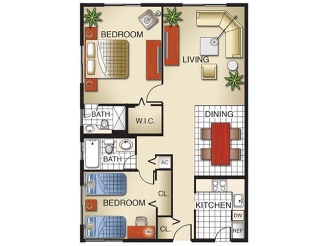 Modelo de apartamento: Model BX2 Dormitorios, 2 Baños, 1007 sq ftNo Disponible![]()