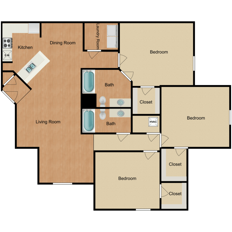 Modelo de apartamento: Three Bedroom$1,2503 Dormitorios, 2 Baños, 1189 sq ftDisponible Ahora![]()