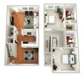 Modelo de apartamento: LilacLlame para Precios2 Dormitorios, 2 Baños, 1049 sq ftNo DisponibleLilac - Plano 1 Azalea