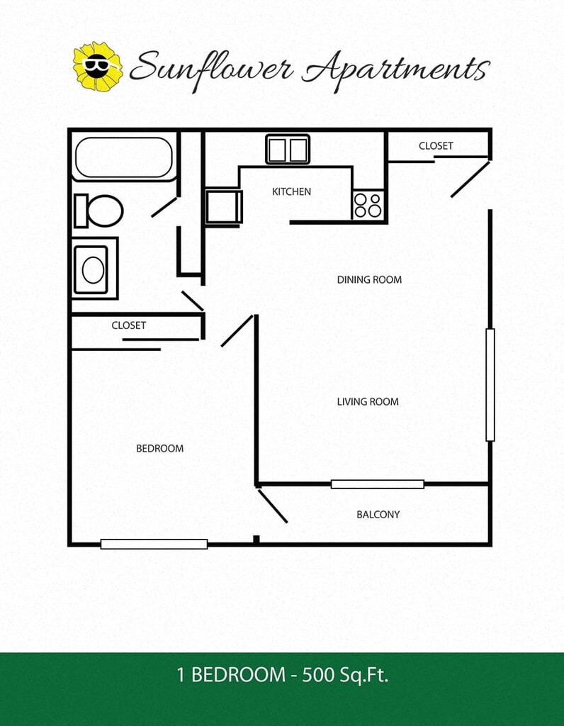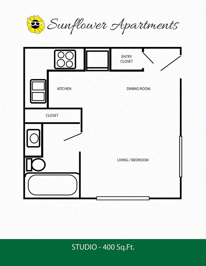 Sunflower Apartments ofrece apartamentos de Estudio a 2 Dormitorios desde $699 con 400–700 pies cuadrados. Aquí está el precio actual y la disponibilidad: