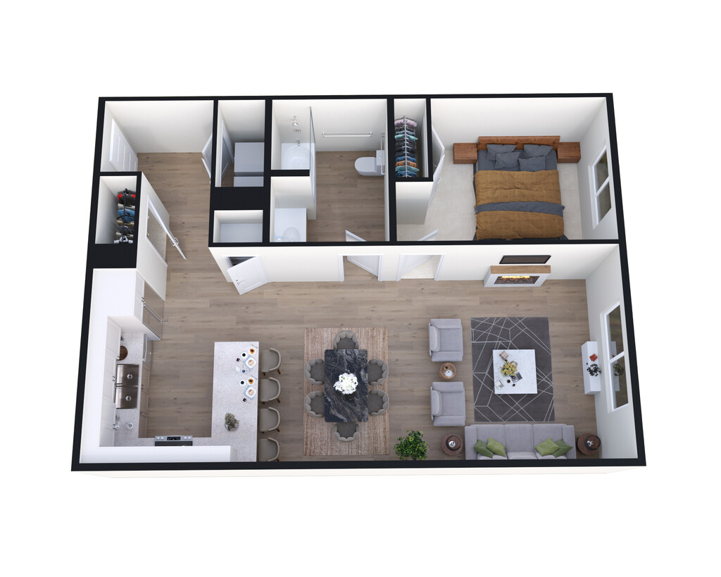 1 Dormitorio, 1 Baño, 870 pies²Galería del Modelo