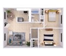 Modelo de apartamento: 1x1Desde $1,1951 Dormitorio, 1 Baño, 625 sq ftNo Disponible1x1 - Plano 1 2 Dormitorios