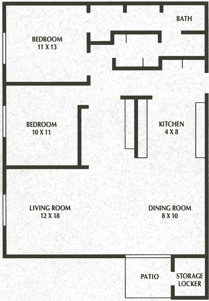 2 Dormitorios, 1 Baño, 995 pies²El más grandeEsta opción tiene las unidades más grandes para este modeloGalería del Modelo