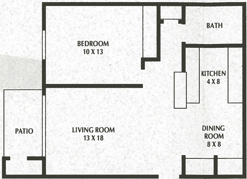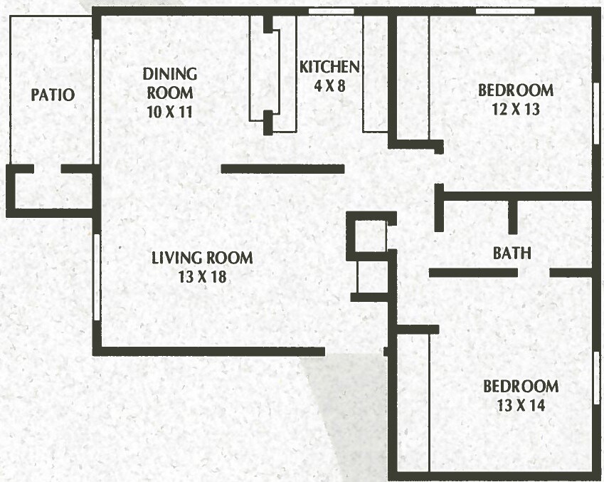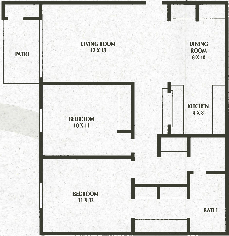 SS - 2 Bed, 1 Bath - 995sqft - Plano 1 SS - 2 Bed, 1 Bath - 972sqft