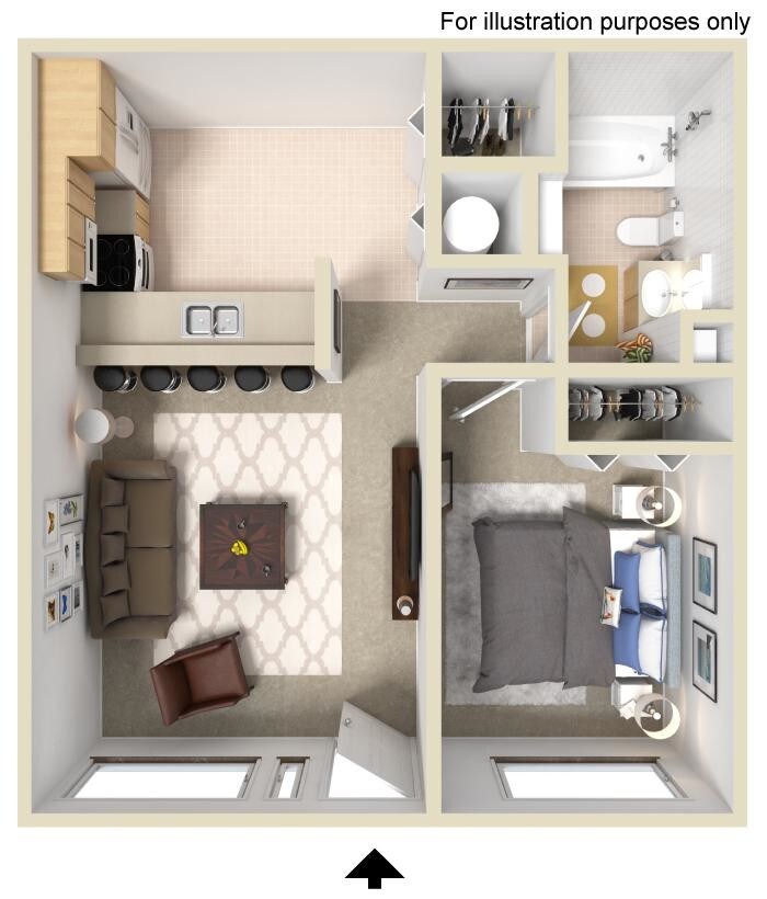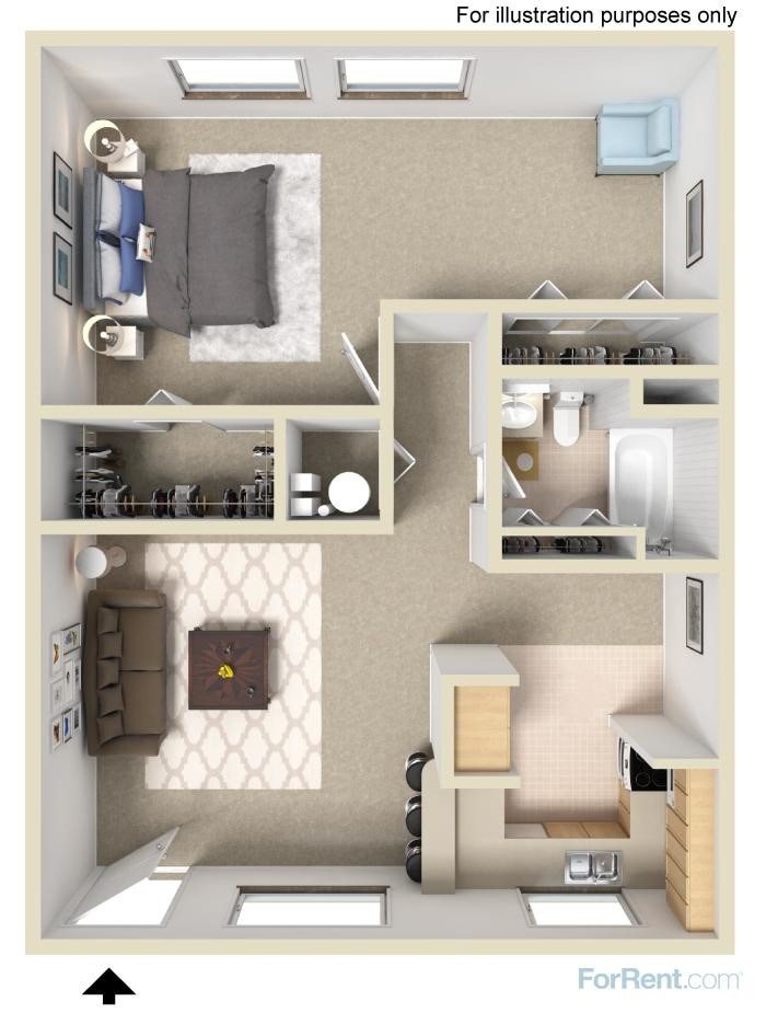 Modelo de apartamento: One BedroomDesde $9551 Dormitorio, 1 Baño, 528 sq ftNo Disponible![]()