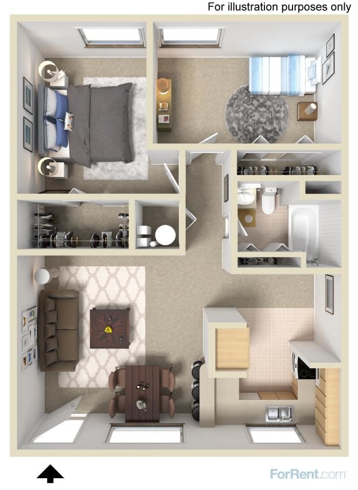 2 Dormitorios, 1 Baño, 800 pies²Galería del Modelo