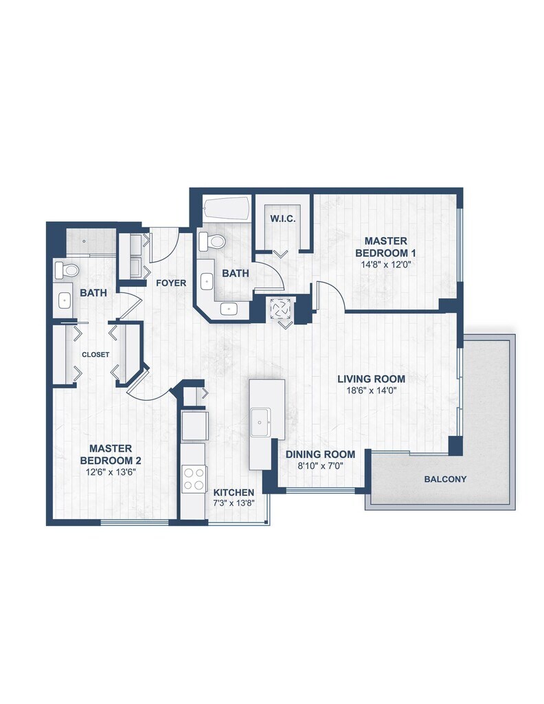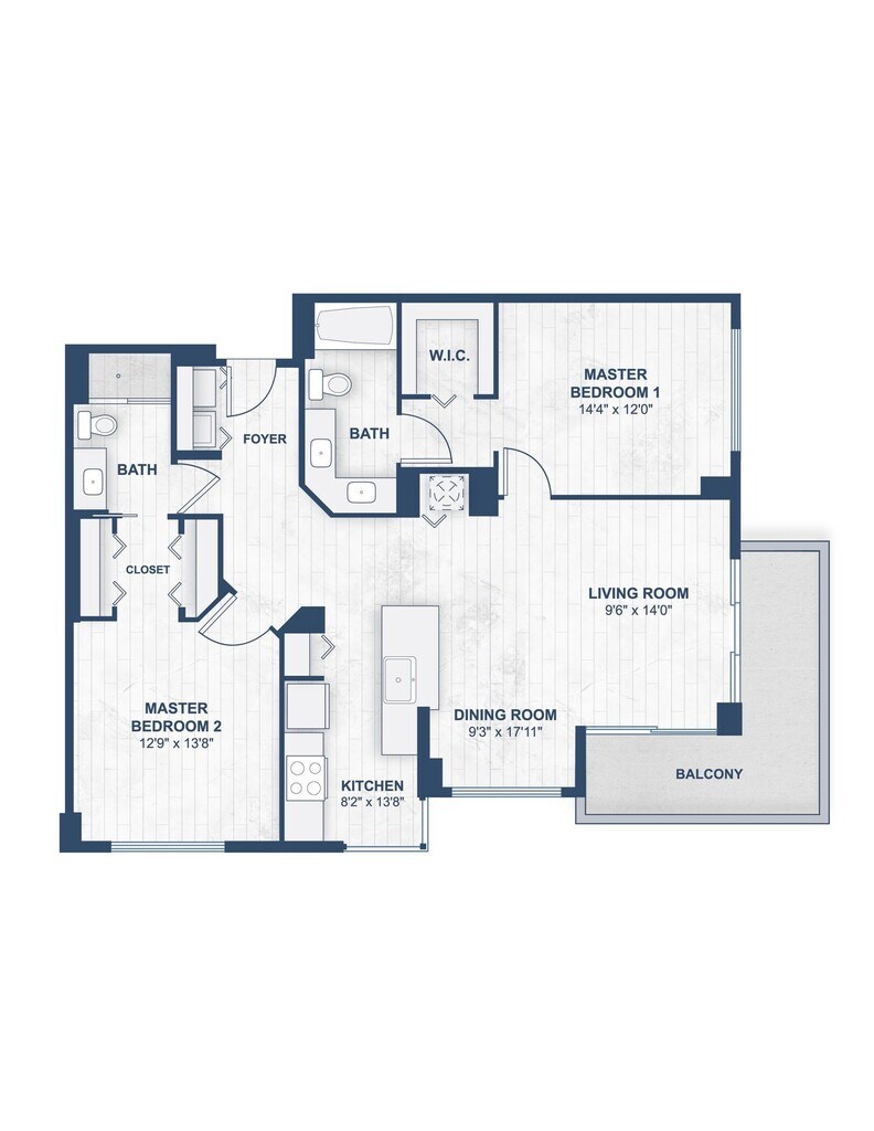 1 Dormitorio, 1 Baño, 974 pies²Disponible AhoraGalería del Modelo