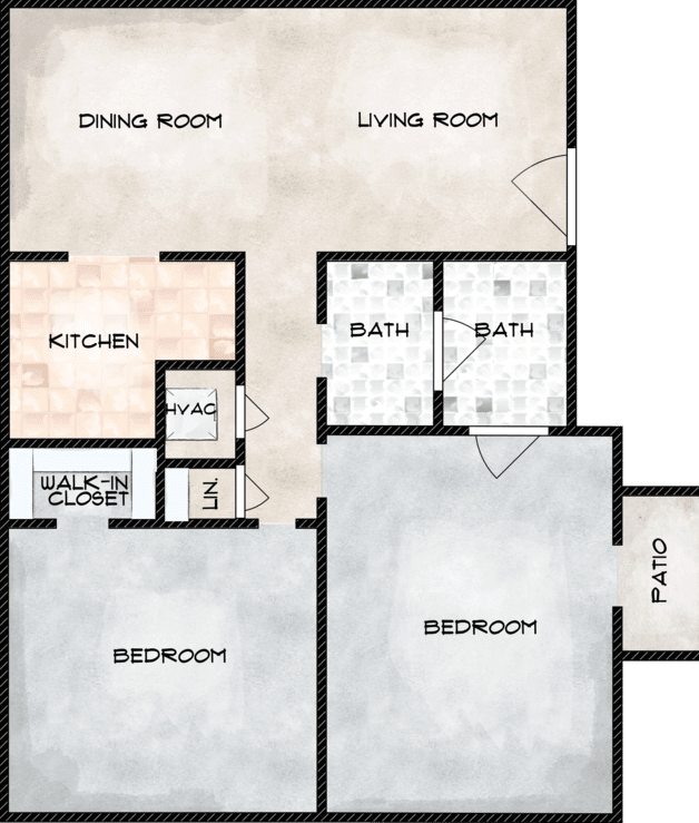 Modelo de apartamento: 2X22 Dormitorios, 2 Baños, 850 sq ftDisponible Ahora![]()