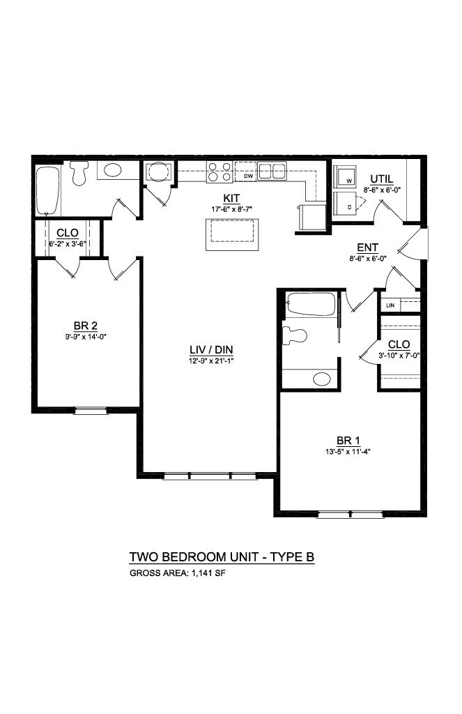 1BR-A - Plano 2 Unidad de apartamento: 2451-103Modelo de apartamento: 1BR-A$1,4251 Dormitorio, 1 Baño, 750 sq ftDisponible Ahora1BR-B