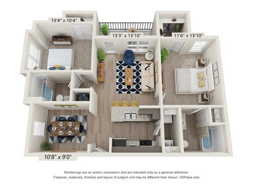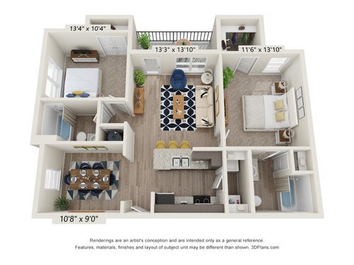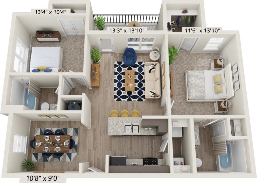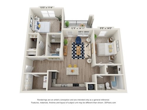 Modelo de apartamento: 2BR-HC$1,7052 Dormitorios, 2 Baños, 990 sq ftDisponible Ahora![]()