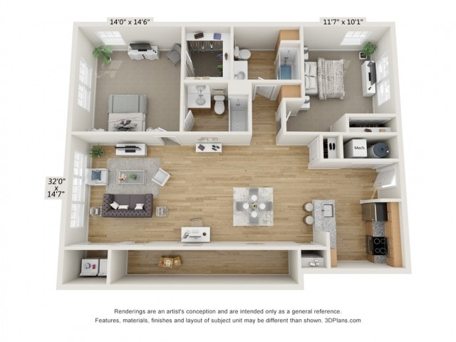 Modelo de apartamento: The Eclipse$1,8002 Dormitorios, 2 Baños, 1452-1480 sq ftNo Disponible![]()