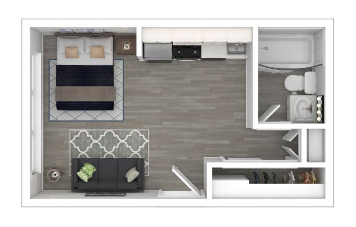 Modelo de apartamento: StudioLlame para PreciosEstudio, 1 Baño, 425 sq ftNo Disponible![]()